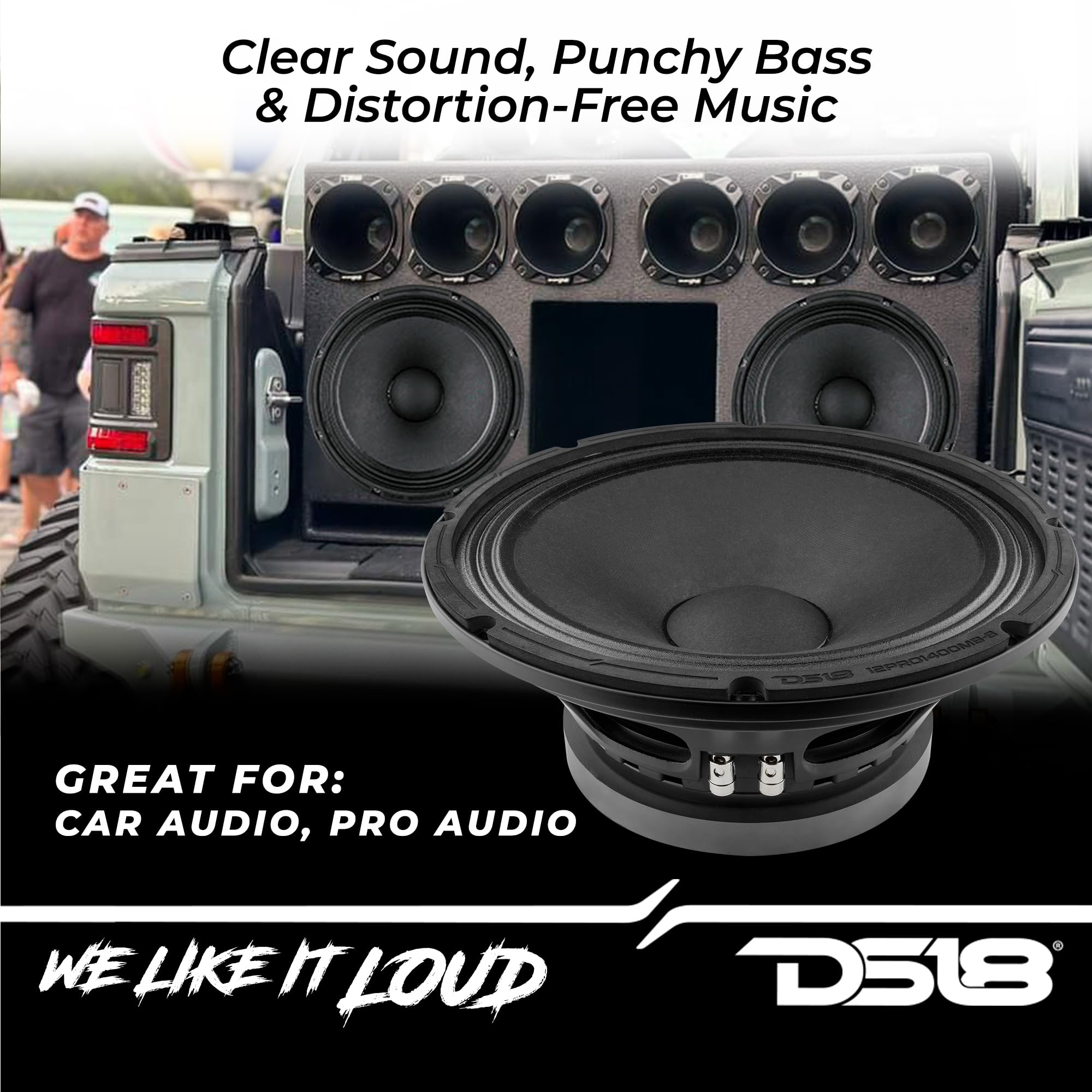 - POWERFUL AND DYNAMIC BASS - Immerse yourself in a world of crisp, powerful sound with DS18's 12PRO1400MB-8. Designed to dominate the mid-bass range, these speakers deliver authoritative and punchy bass responses that bring your music to life with exceptional impact and clarity