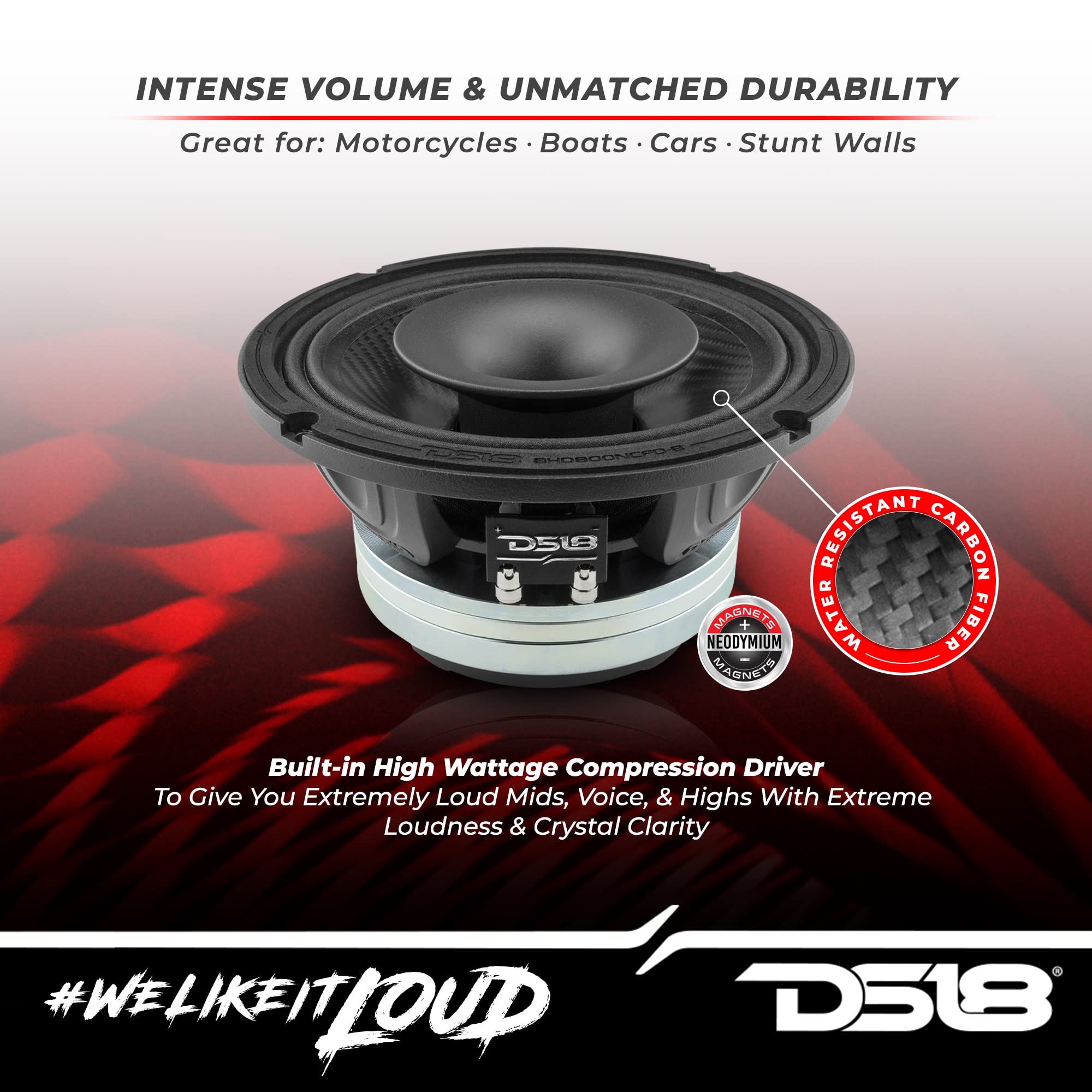 - Crafted for Durability - Meticulously crafted with a focus on durability, these speakers combine raw power with robust construction, ensuring they redefine your audio experience and stand the test of time. Elevate your sound with the DS18 8HD800NCFD-8 today