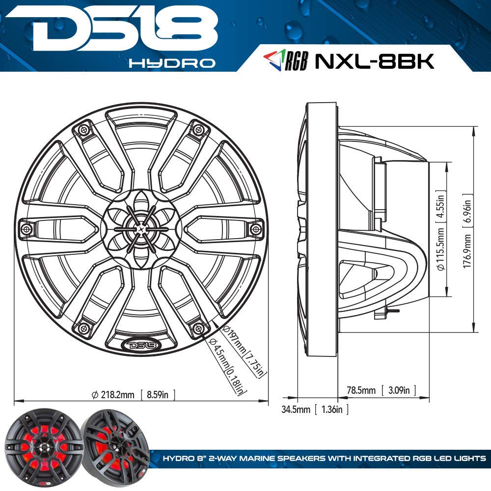 - INTEGRATED RGB LIGHT - The DS18 Marine Grade Carbon Fibre Coaxial speakers are 2-way and they feature integrated RGB light. The beautifully lighted RGB LED lights will set the tone and match any colour scheme supported by the LED BTC controller.